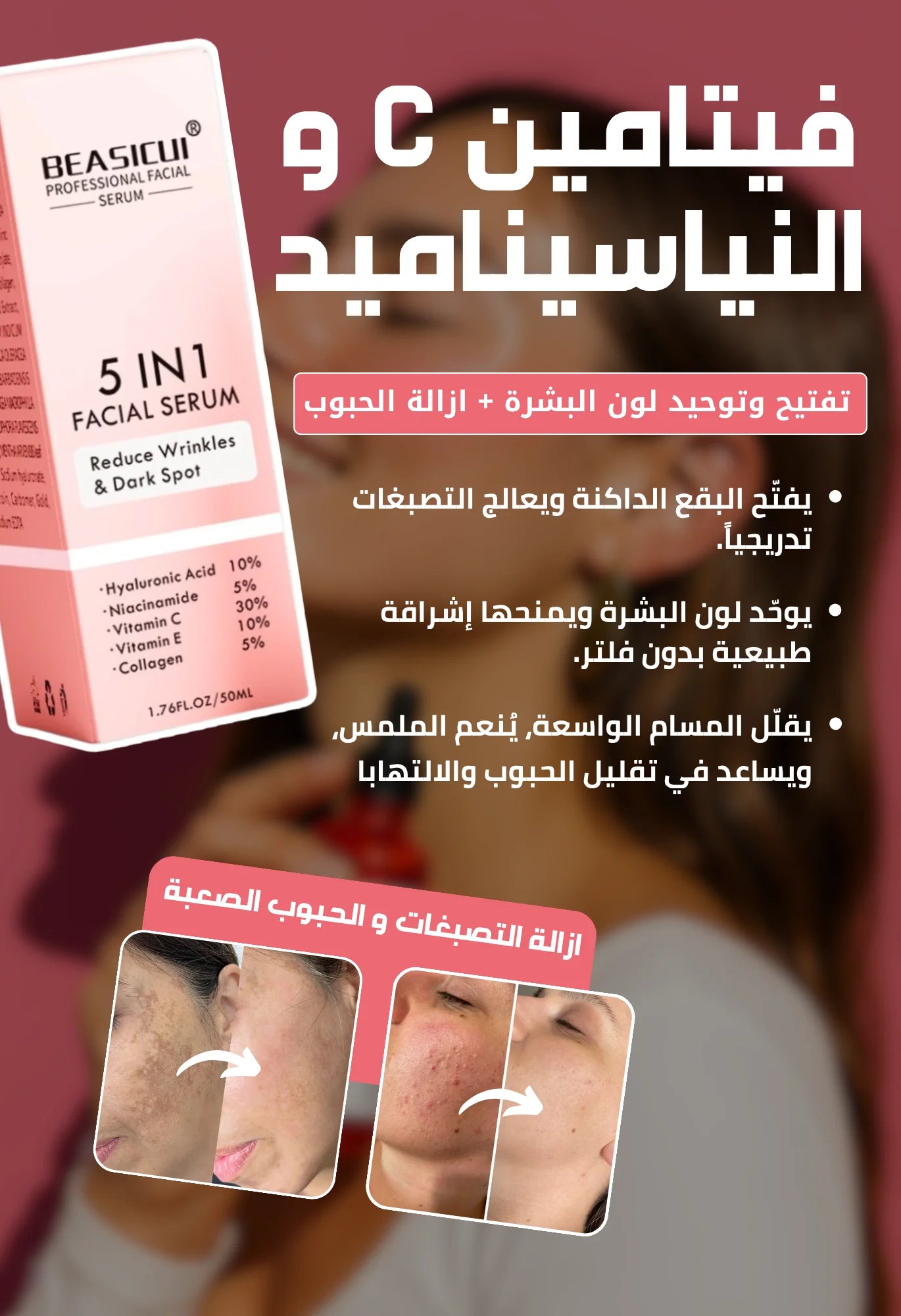 تقليل ملحوظ للتصبغات بنسبة 80%. توحيد اللون وتحسّن في مرونة البشرة